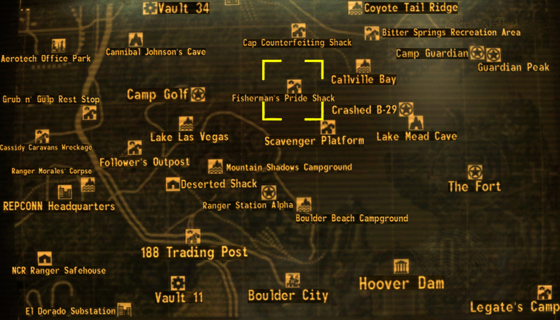 La Baracca Orgoglio del pescatore è una località della Zona contaminata del Mojave. Si trova a est di Camp Golf e nord della Stazione Mercenari Alpha.