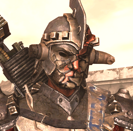 E' un predone e risiede in un accampamento, poco più a est dell'Ingresso della Strada principale. Come gli altri quattro sfregiati unici, è un nemico formidabile, dotato di molti punti salute e una mitragliatrice da spalla come arma. Indossa un'armatura e una maschera che sembrano un'imitazione di quella indossata dal Legato Lanius, evidenziando il suo passato nella Legione di Caesar.