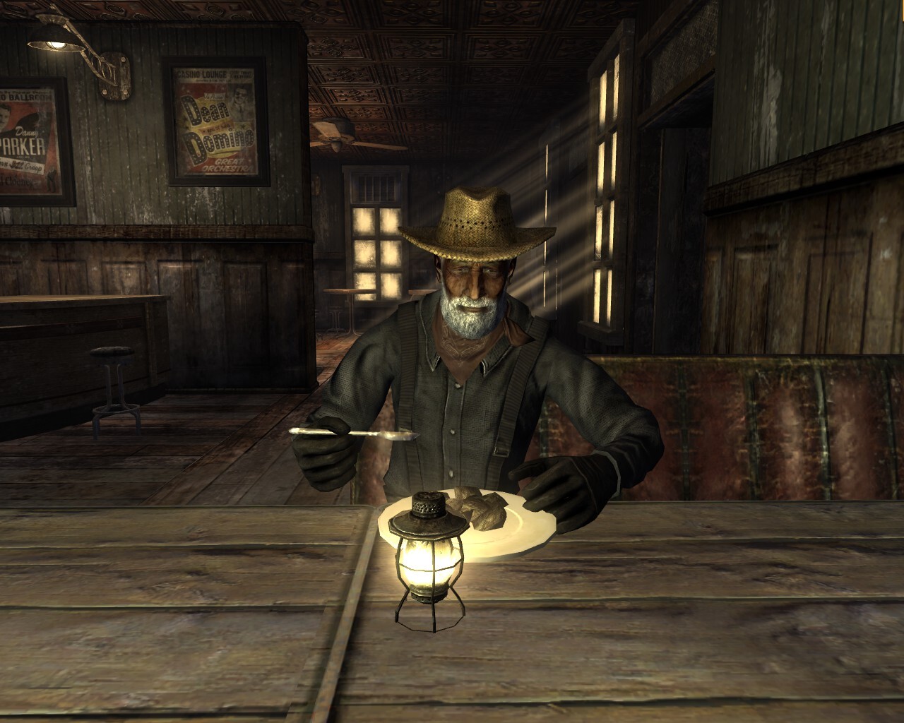 - Se non è a casa sua o seduto sulla solita sedia, Easy Pete si potrà trovare seduto ad un tavolo del Prospector Saloon intento a bere o mangiare.