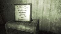 | 18 | La zona contaminata della Capitale si rivelò un posto crudele e inospitale, e il Vagabondo solitario si arrese alle immoralità che gia si erano impossessate di così tante anime – egoismo, avidità, crudeltà. Questi furono i valori che guidarono l'anima perduta e la accompagnarono nelle innumerevoli sfide e trionfi. |