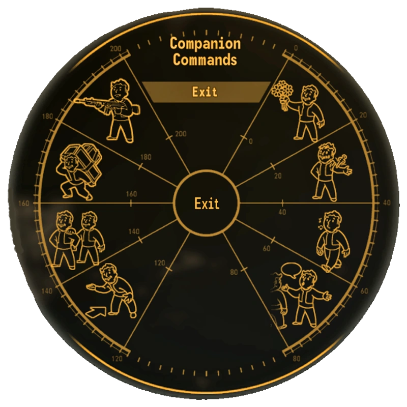 Sebbene non possano essere controllati manualmente, è possibile impartire loro ordine tramite la Ruota dei comandi, che appare ogni volta che parliamo con loro. E' così possibile definire la loro strategia in combattimento, che tipo di armi utilizzare (a distanza o da mischia) oppure aprire il loro inventario. In Fallout: New Vegas è possibile avere fino a due seguaci, uno di supporto, come ED-E e Rex, l'altro umanoide, come Boone, Lily o Arcade Gannon.