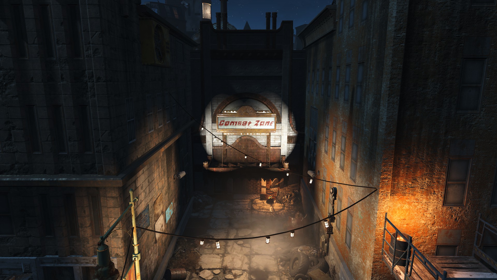 The "Combat Zone" was the 1960s to 1980s name for the red light and adult entertainment district (Chinatown) near the in-game location, the name referring to both the crime and soldiers that frequented the area. In real life, the area today has changed due to re-zoning starting in the early 1990s and is not currently considered a red light district. Due to the zone changes, most of the adult bookstores, sex shops, and peep shows closed down. The real life Combat Zone came to be in part because the nearby Scollay Square was demolished, although in the Fallout universe, Scollay Square was never demolished, as can be seen when the player character visits Goodneighbor and the Memory Den. There are also references to Scollay Square on Diamond City Radio.