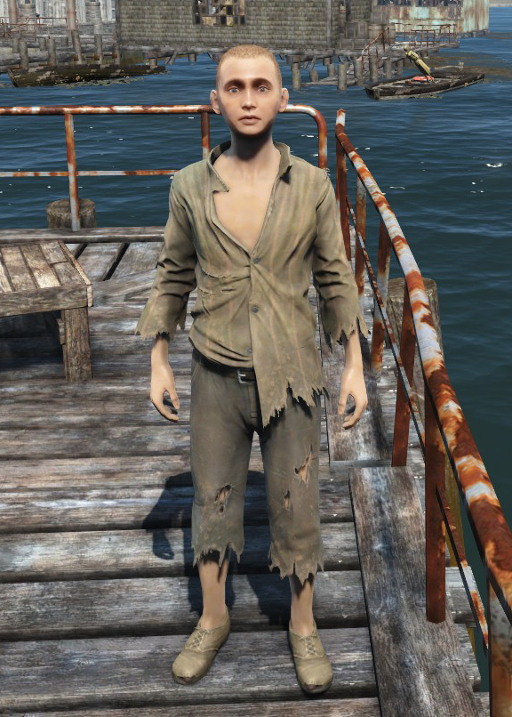 - ↑ This "outfit" is part of his body (flagged as skin in game records) and cannot be removed.