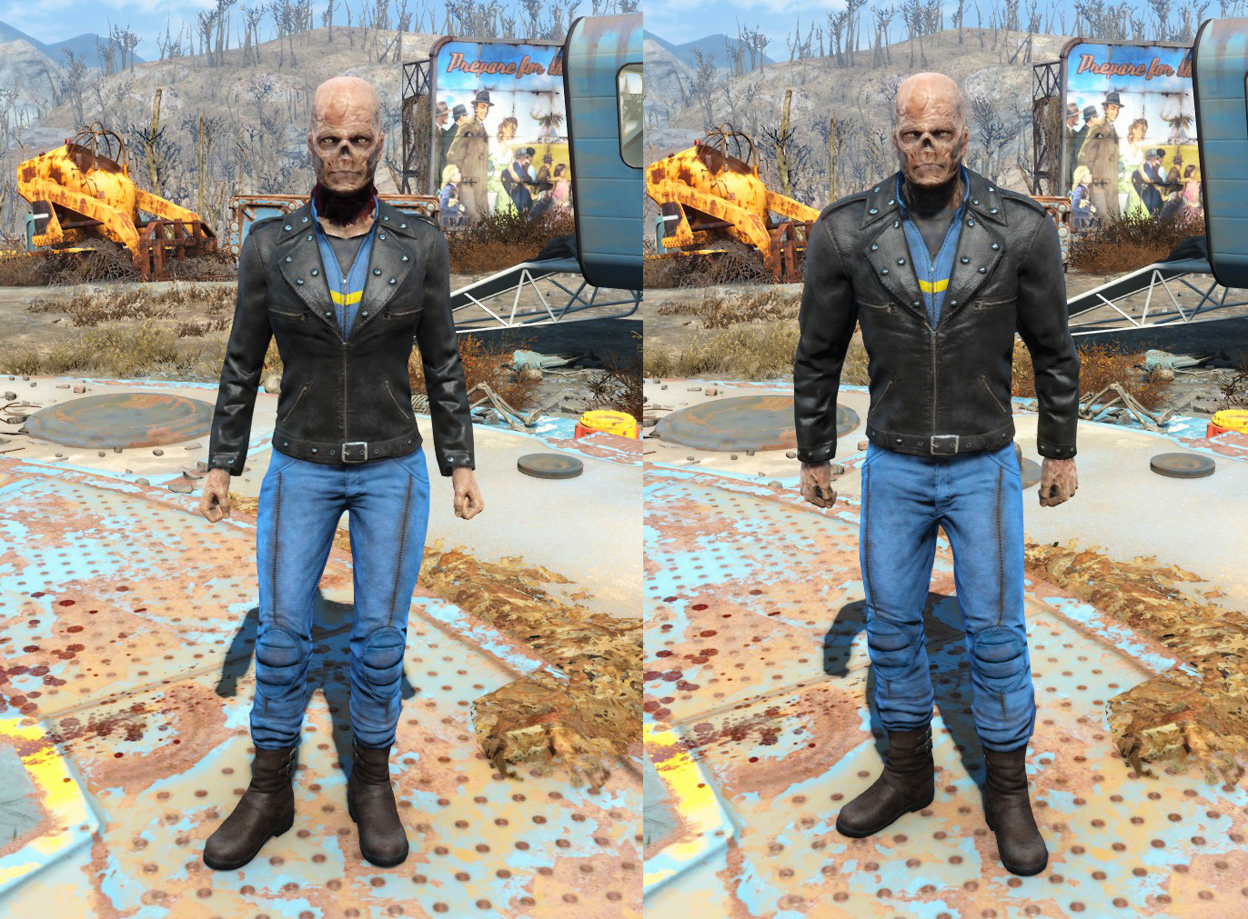 Any junkyard dogs can also wear dog apparel, but in order to give it to them, the Sole Survivor needs to use reverse pickpocket to place it in their inventory. It will not be immediately equipped but will be worn once one has fast traveled away and back.