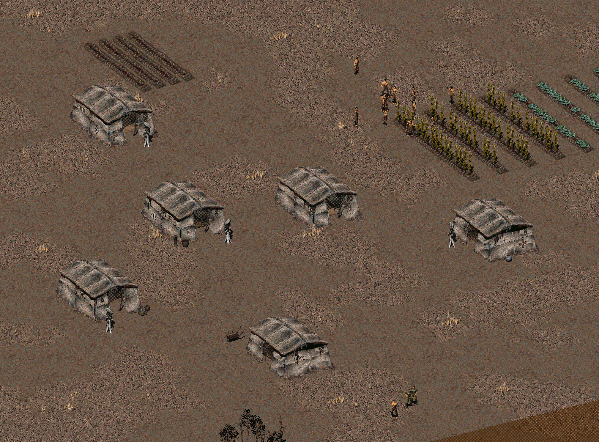 Den (Arroyoから6スクエア東、3スクエア南)はドラッグと奴隷売買の温床。ところどころ「ミニNew Reno」をイメージさせるものがある。どちらも半ば堅固ではあるが、中央当局と呼べるものはない。