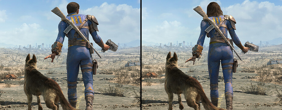 - Tak, jak Samotny Wędrowiec z Fallout 3, w materiałach promocyjnych gry Jedynemu Ocalałemu towarzyszypies.