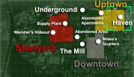 Kryjówka jest wielkim budynkiem na przedmieściach Dzióry zajętym przez Ashura , Sandrę , Marie i Bandytów z Dzióry . Jest podzielony na 2 sekcje.