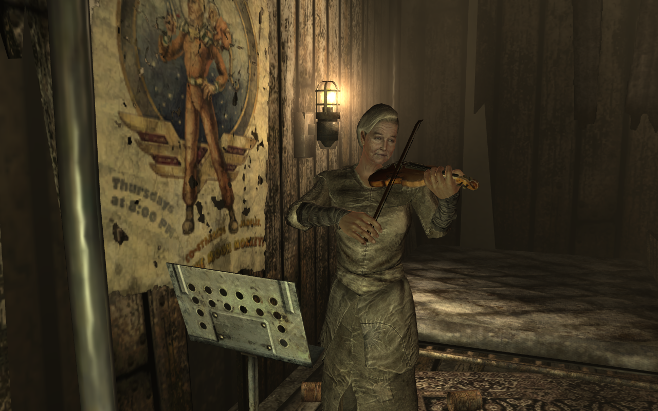 - "If my notes sound sweeter it's all thanks to a special someone who helped out a poor old lady living alone in the Wasteland. Thank you, my friend."