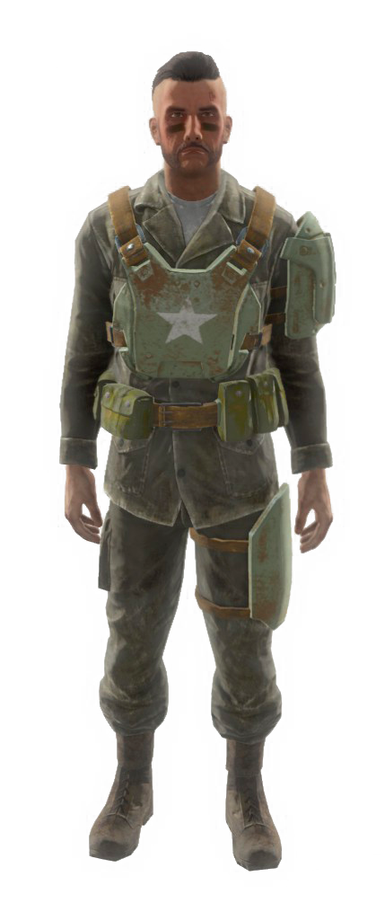 ↑O Sole Survivor: "Nunca ouvi falar dos Atiradores. Quem são eles?" Robert MacCready: "Eles são uma das maiores gangues da Comunidade.Tem um representante por ser louco ... você sabe, com tanta força que acha que eles eram um culto ou algo assim.Preso com eles por um tempo porque o dinheiro era bom, mas eu nunca me encontrei. Foi por isso que fiz uma pausa limpa e comecei a voar sozinho.Agora e você? Como sei que não vou acabar com uma bala nas costas?" (Diálogo de MacCready)
