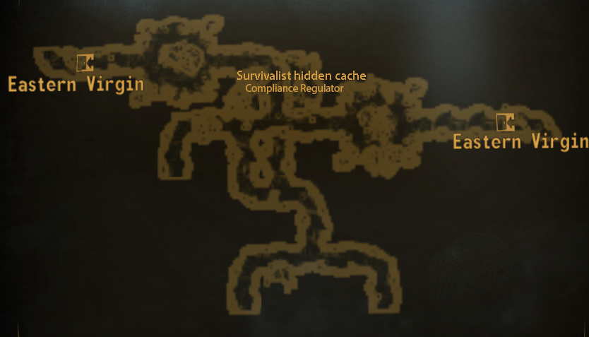Em direção ao centro da sala principal na divisão leva a mais minas e fios de disparo de espingarda. Há também uma mina escondida atrás de um teddy bear na entrada da sala central. Em caixas e engradados estão itens de socorro e munições. Existe também a Compliance Regulator, uma workbench crate e uma das seis hidden survivalist caches. Existe um terminal com dois longos diários sobre ele. A leste estão mais minas e um esqueleto com uma recharger pistol.