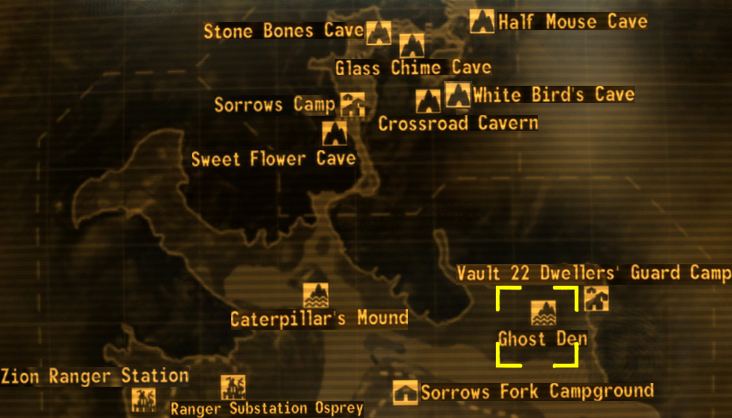 A Ghost Den aparece apenas na DLC Honest Hearts do Fallout: New Vegas.