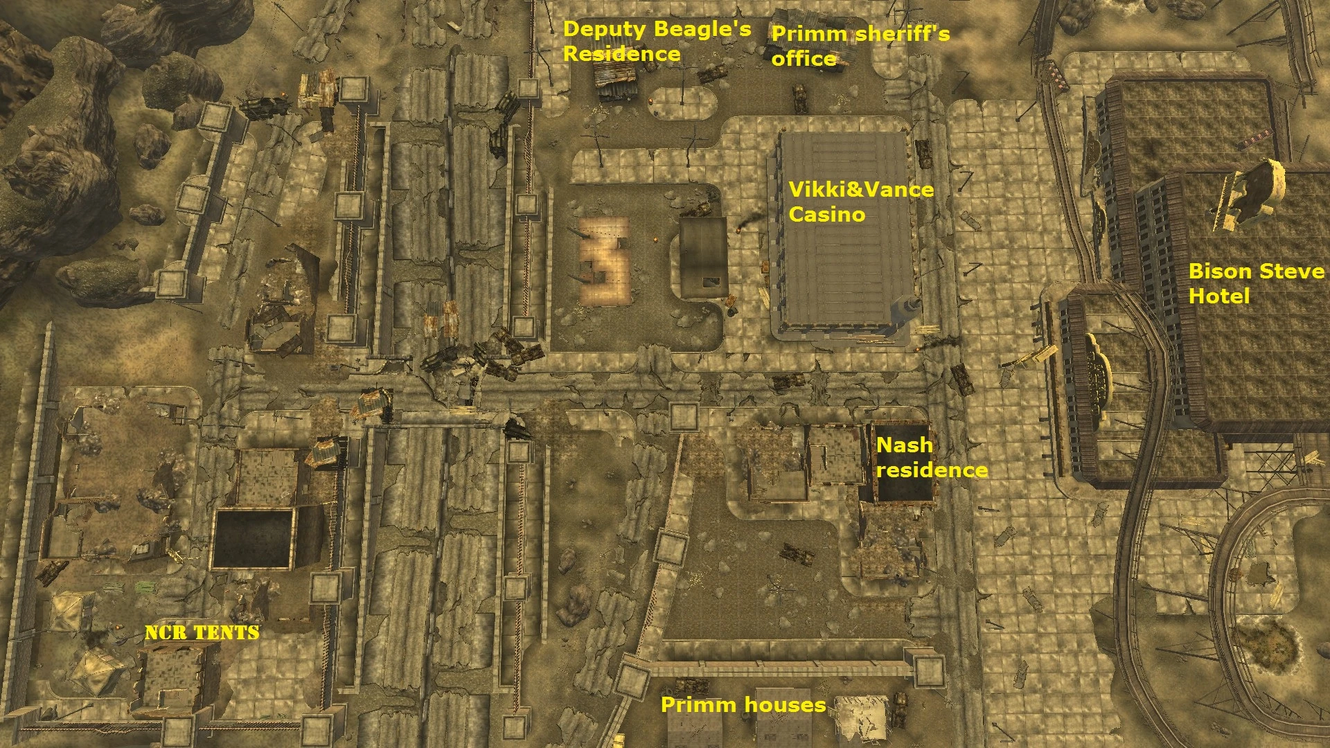 - A partir do patch 1.02.3xx, cidadães de Primm irão residir em suas casas durante a noite e vagar em Primm durante o dia.