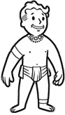 Vestuário 1st Recon assault armor · 1st Recon survival armor · Advanced radiation suit · All-purpose science suit · Ambassador Crocker's suit · Benny's suit · Boomer flightsuit · Boomer jumpsuit · Bounty hunter duster · Bright Brotherhood robe · Brotherhood elder's robe · Caravaneer outfit · Cass' outfit · Civilian engineer jumpsuit · Courier duster · Daniel's outfit · Dapper gambler suit · Dead Money jumpsuit · Dean's tuxedo · Enclave officer uniform · Fancy gambler suit · Father Elijah's robe · Field hand outfit · Followers doctor coat · Followers lab coat · Formal wear · Hazmat suit · Jailhouse Rocker · Janet's Boomer outfit · Kings outfit · Memphis Kid outfit · Merc outfit · Pre-War businesswear · Pre-War outfit · President Kimball's suit · Prospector outfit · Prostitute outfit (Chained prostitute outfit , Exposed prostitute outfit ) · Radiation suit · Ranger outfit · Raul armor · Regulator duster · Roving trader outfit · Scientist scrubs (Mad scientist scrubs , Dr. Klein's scrubs , Dr. Mobius' scrubs ) · Sexy sleepwear (Sleepwear , Naughty nightwear ) · Scribe robe · Shabby gambler suit · Sheriff's duster · Slave rags · Space suit · Starlet hologram outfit · Ulysses' duster · US Army General outfit · Vera's outfit · Viva Las Vegas · Wasteland outfit · Well-heeled gambler suit · White Glove Society attire Vestuário de Vaults Armored Vault 13 jumpsuit · Vault 3 jumpsuit · Vault 11 jumpsuit · Vault 19 jumpsuit · Vault 21 jumpsuit · Vault 22 jumpsuit · Vault 34 jumpsuit · Vault 3 utility jumpsuit · Vault 34 security armor · Vault 34 security helmet · Vault lab uniform