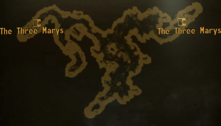 As cavernas das Three Marys estão localizadas ao longo do rio após o marcador do mapa das Three Marys, na primeira área com três grandes rochas, e consiste em uma caverna com duas entradas. A primeira entrada fica em uma saliência na margem sul do rio, mas pode ser acessada pela margem norte através de uma ponte de pedra.