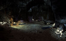 Atravessar a caverna para depois usar a outra entrada fornece um atalho para a curva mais ocidental do rio. Há três White Legs pain makers dentro e instalações para dormir. No desfiladeiro, o solo está repleto de lixo e detritos.[Non-canon 1]