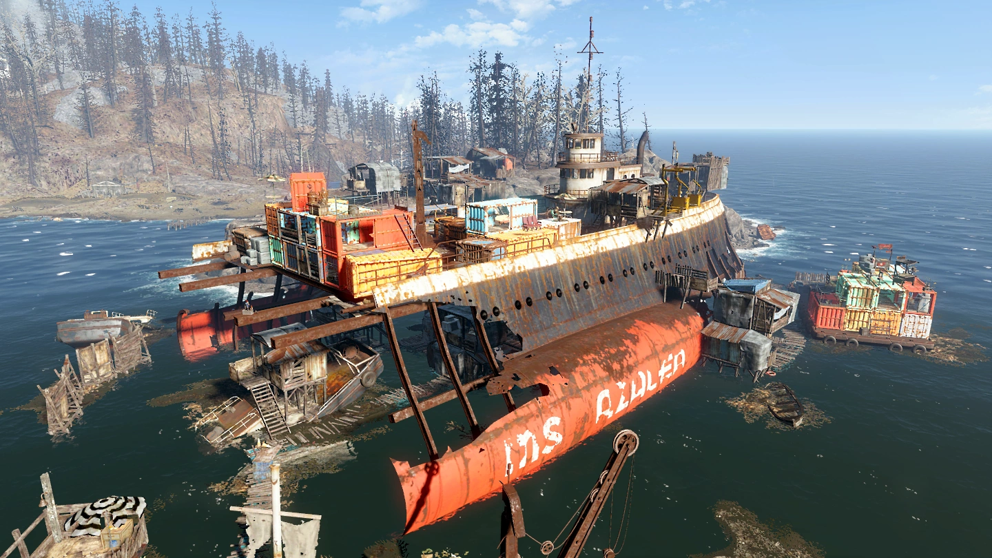 Локация находится в непосредственной близости от восточного мыса Острова, на мелководье у берега. Представляет собой разрушенный морской контейнеровоз с отвалившейся носовой частью и потерявшейся средней. Многочисленные сохранившиеся грузовые контейнеры на верхней палубе, внутри и снаружи судна надстроены и переоборудованы под жильё бандой трапперов во главе с Трюмом.