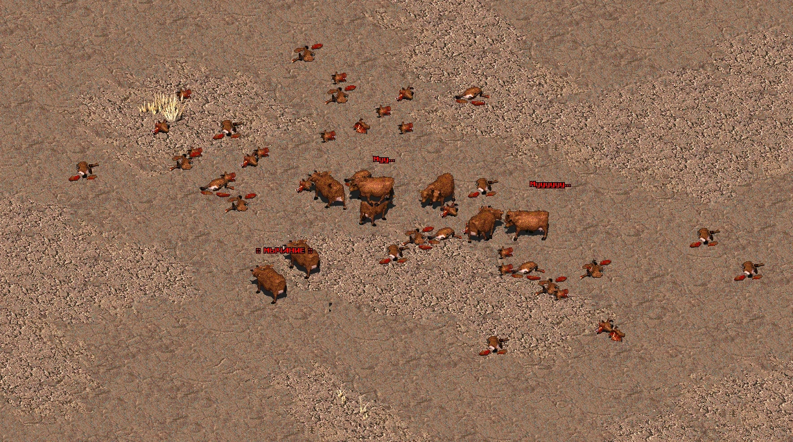 У вас странное чувство относительно этого места. Очаровательный запах коровьего навоза и гниющего мяса распространяется отсюда на несколько футов.Описание в игре