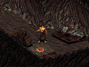 - Если зайти в лагерь с западного входа, ведущего через пещеры, Блуждающая тень может не услышать звуки сражения и остаться в живых. Но после того, как Избранный покинет логово и затем вновь вернётся в него, дикаря можно будет обнаружить лежащим мёртвым на земле.