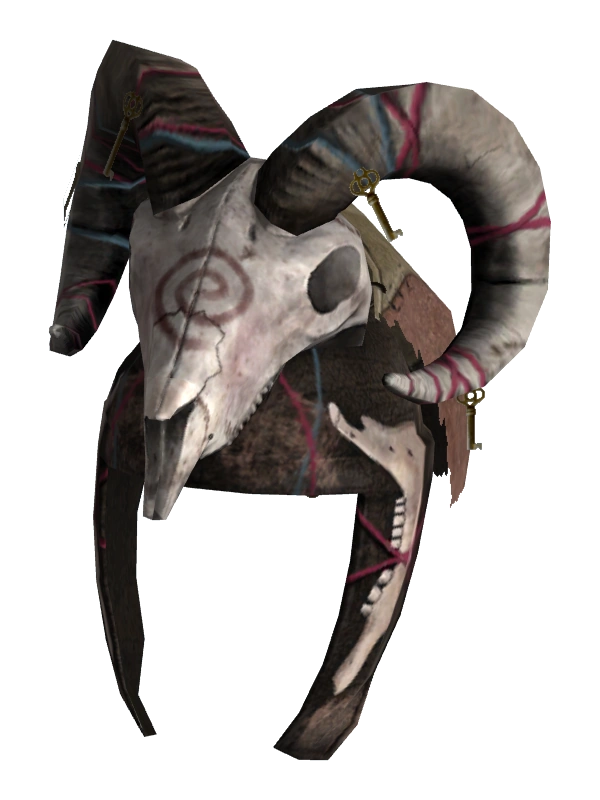 Непременный головной убор членов банды «Чертей» по которым их можно легко опознать. Сделан из черепа ягнёнка толсторога. Внешне похож на другие два шлема Чертей. Рога декорированы ключами, а на лбу красным цветом нарисована спираль. Затылок защищает подкладка, сделанная из четырёх лоскутов разных материалов и цветов.