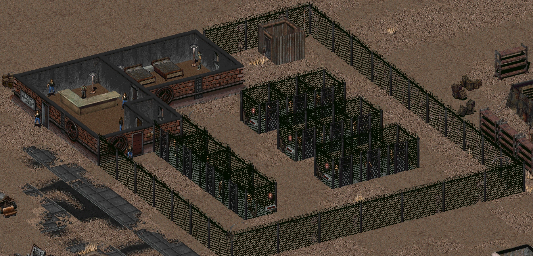 Камеры-клетки находятся на заднем дворе владений. Всего их шестнадцать штук. Открытие клеток осуществляется через терминал.
