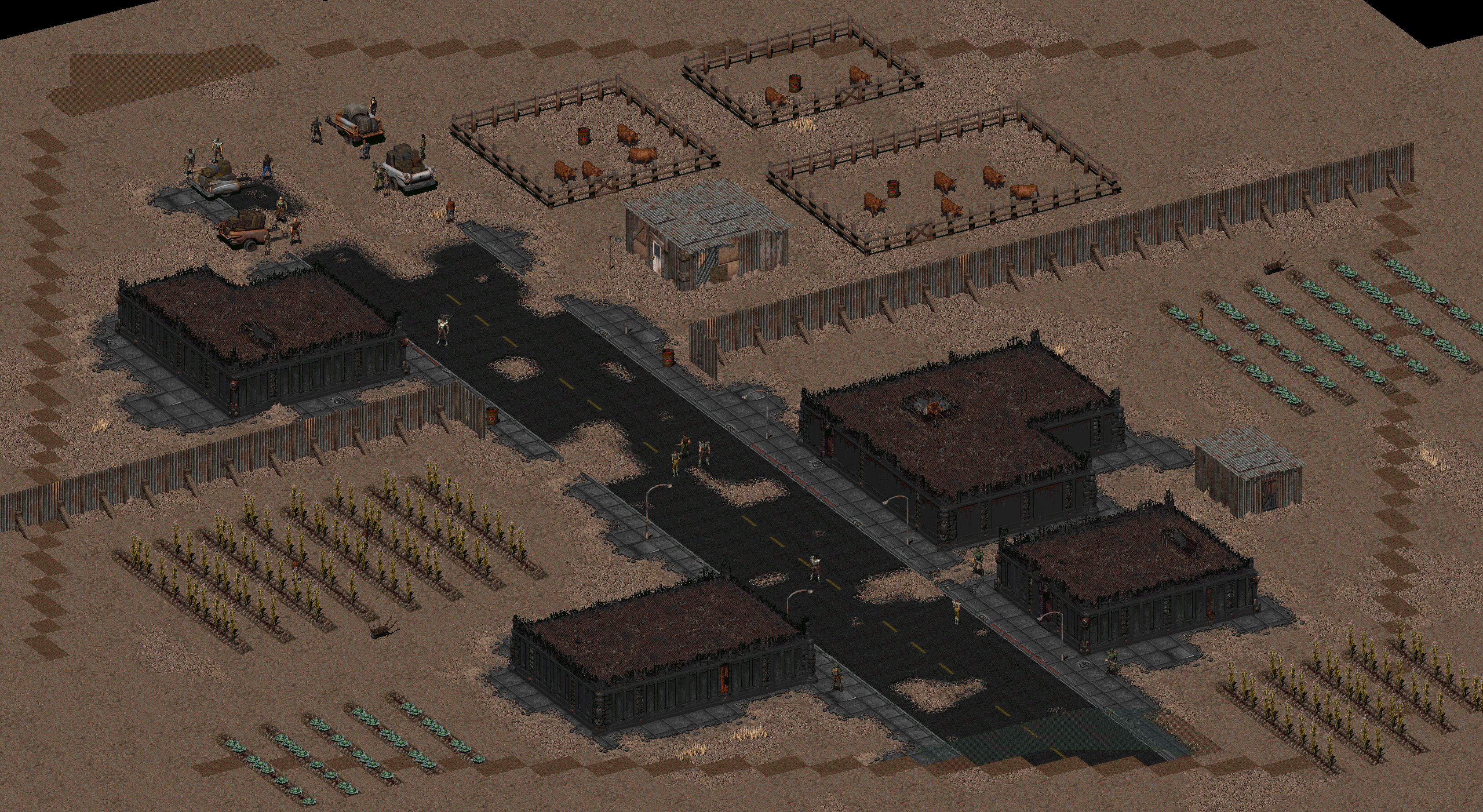 Окраина крупнейшего в Пустошах Калифорнии города. Смесь из ферм, загонов и остатков магистрали, ведущей в центр Хаба, район не может пожаловаться на отсутствие деятельности или безопасности. Несмотря на то, что этот район нельзя назвать наиболее привлекательным или полезным, он всё же формирует первое впечатление о городской жизни у путешественников. Настоящие авантюристы могут найти здесь достаточно источников для удовлетворения страсти к путешествиям, ведь караваны всегда готовы нанять достаточно смелых — или глупых, — желающих испытать вкус опасной жизни охранника каравана.