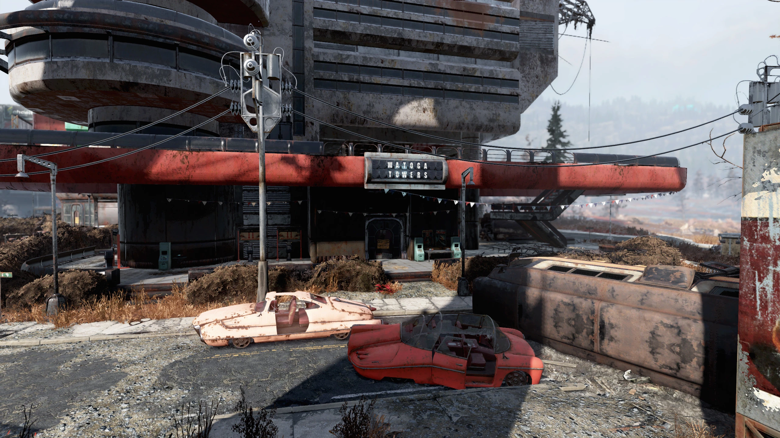 Высокое здание между общественным центром Ватоги и штаб-квартирой АМС. Рекламируемые как «Дом завтрашнего дня»[1], эти вышки Ватоги служили многоквартирным футуристическим домом для элитных жителей Ватоги. Вскоре после Великой войны Вернон Додж сумел добраться до лифта башни и нашел подходящие апартаменты под номером 3B, где устроил себе пристанище примерно на три недели[2].