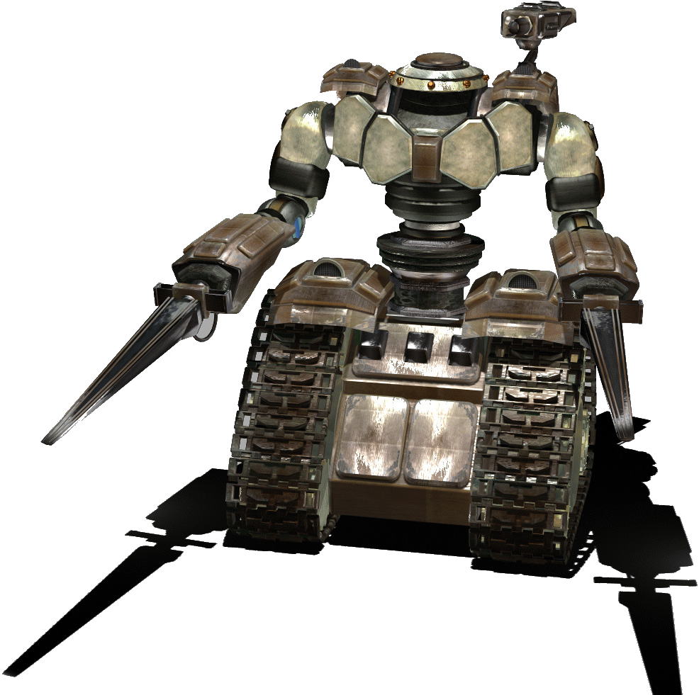 Грузоподъёмник — средний наземный робот на гусеничном шасси. Снабжён двумя манипуляторами. Грузоподъёмность — высокая. Силовая установка — скорее всего, компактный и мощный, достаточно малошумный электродвигатель. Элемент питания — вероятно, средних размеров батарея средней мощности (возможно, взаимозаменяемая с «андроидом»). Скорость перемещения — средняя или даже медленная. Проходимость средняя, особенно по сильно пересечённой местности, водонасыщенным грунтам и пескам. Форсировать водные преграды по дну, по всей видимости, не способен. Живучесть выше средней. Бронирование лёгкое противопульное. .