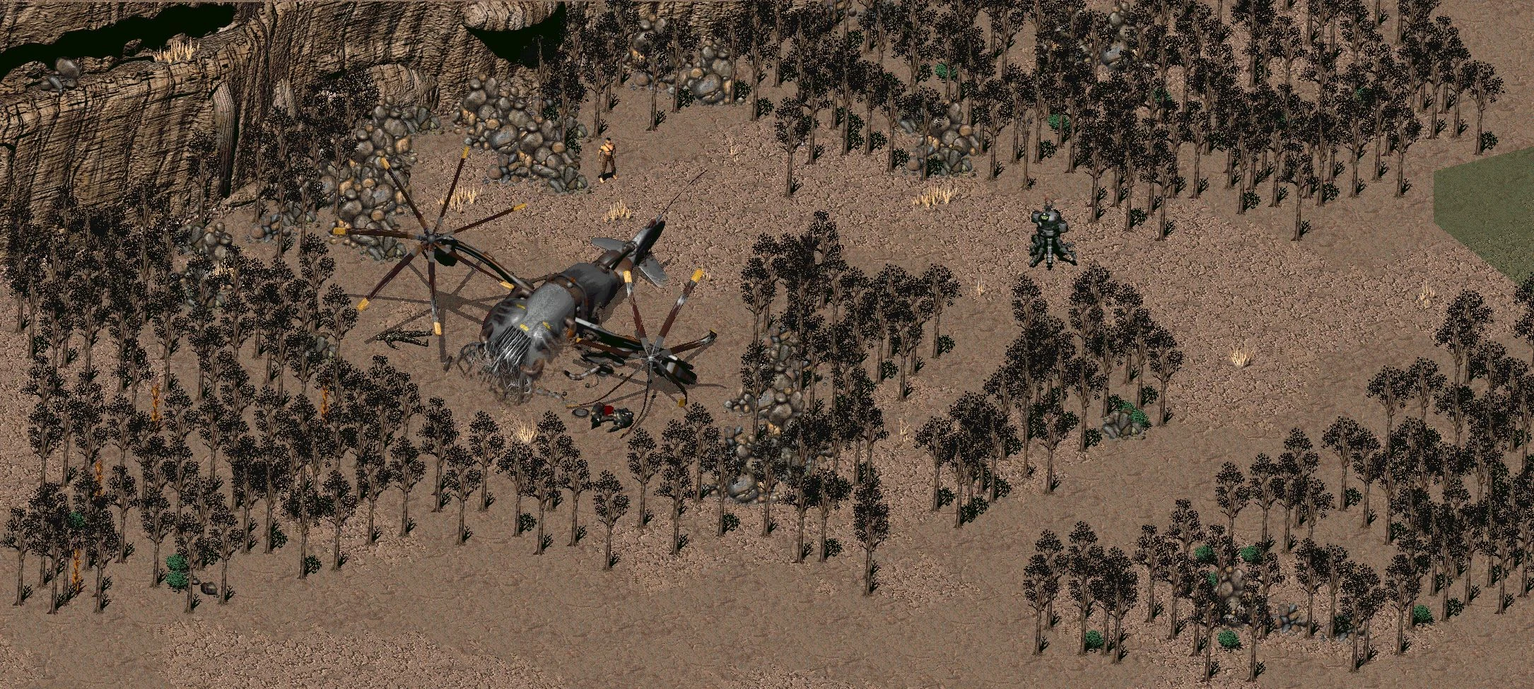 Избранный может найти разбившийся винтокрыл к западу от Кламата. Скорее всего это и есть единственная машина, потерянная Дейзи. Это также подтверждают реплики робота. Если нет, значит под Кламатом Анклав потерял ещё по меньшей мере один винтокрыл.