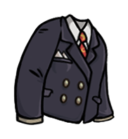 Состоит из тёмного пиджака, брюк, белой рубашки и красного галстука. На пиджаке имеются золотые пуговицы и карманы — один прорезной и два откидных. У своего носителя повышает основную характеристику «Харизма» на 4 очка.