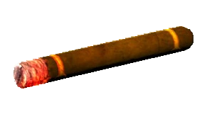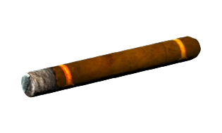 Более тонкая сигара по сравнению с обычной, также отличается двумя жёлтыми полосками около головки и ножки, можно найти и зажжённую. Может быть использована в качестве боеприпаса для хламотрона. Является источником компонентов для модернизации и крафтинга.