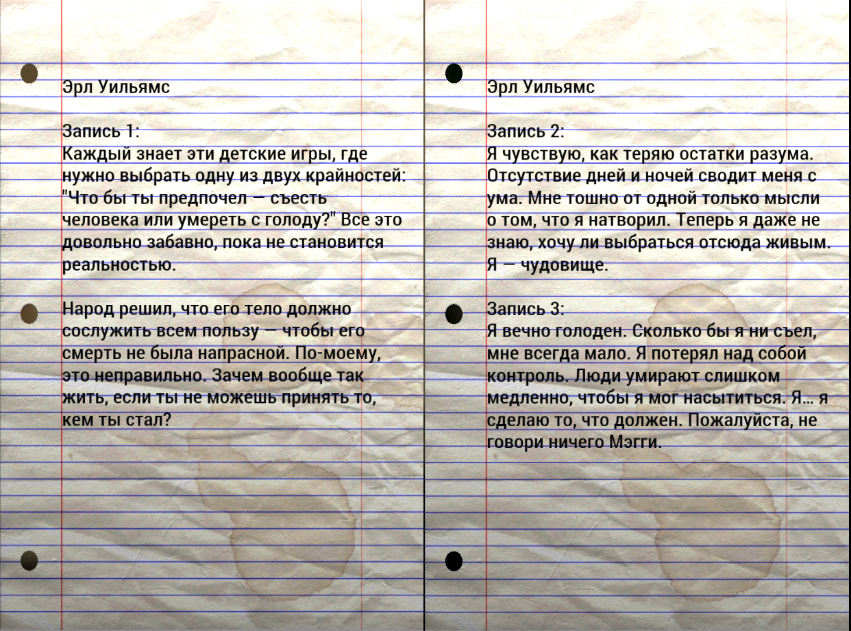 Я чувствую, как теряю остатки разума. Отсутствие дней и ночей сводит меня с ума. Мне тошно от одной только мысли о том, что я натворил. Теперь я даже не знаю, хочу ли выбраться отсюда живым. Я — чудовище.