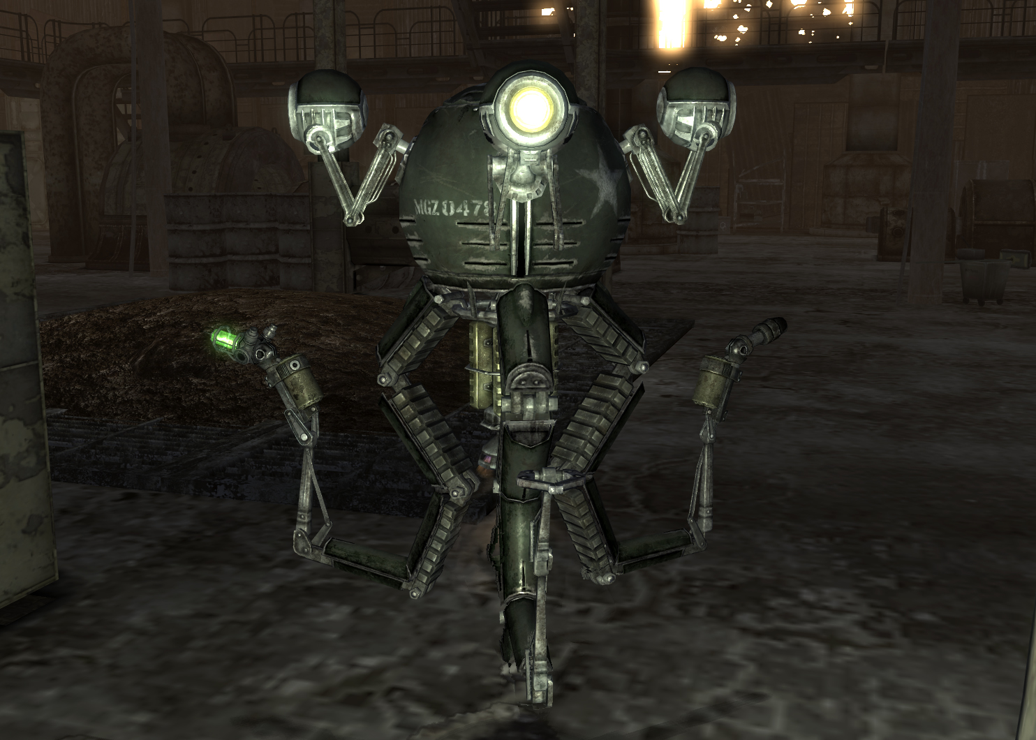 По невыясненным причинам иногда робот оказывается неуязвим: плазма и прочее энергетическое оружие отражается от него в землю (видно при замедлении времени после использования V.A.T.S.), а огнестрелы «защищаются» броней.