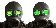 Защитный комплект и маска ЗК с очками НЗ появляются только в дополнении к Fallout: New Vegas — Old World Blues.
