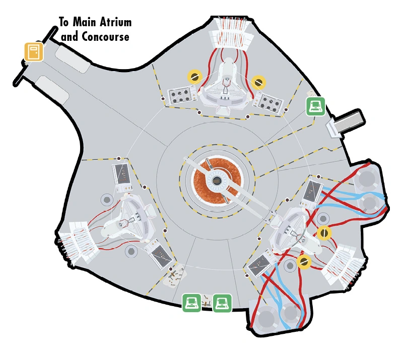 Посреди большого круглого помещения расположен резервуар с красной жидкостью, а сверху трудятся три манипулятора-сборщика. По «углам» находятся стенды с заготовками синтов на разных стадиях. На первом собирают скелеты, на втором наращивают плоть, на третьем накачивают мускулатуру, и в конце изделие погружают в резервуар, из которого выходит готовый синт.