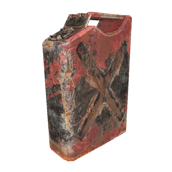 Металлическая канистра красного цвета, частично покрытая ржавчиной. Является источником компонентов для модернизации и крафтинга.