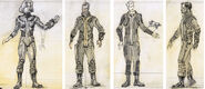 Жёлтая полоса на комбинезонах сделана из золотистой фольги, которая служит теплоотводом и подключена к биометрическим датчикам, встроенным в комбинезон.[1]