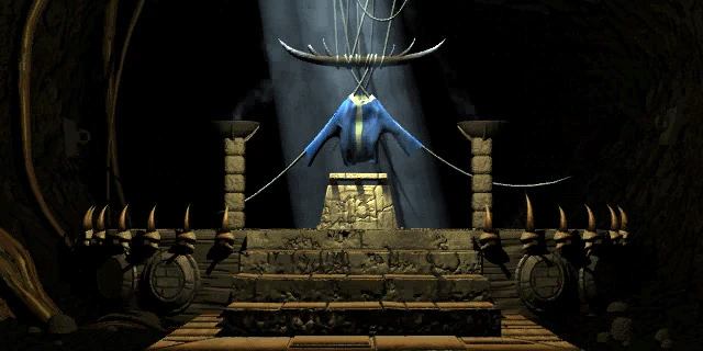 Уникальный комбинезон, который можно найти в шкафу в бараке работорговцев в Парадиз-Фоллз. К нему приложена записка «Сожгите проклятущий комбинезон». Согласно комиксу «One Man, and a Crate of Puppets», комбинезон принадлежал безумному выходцу из Убежища 77 — единственному жителю этого Убежища, если уж на то пошло.