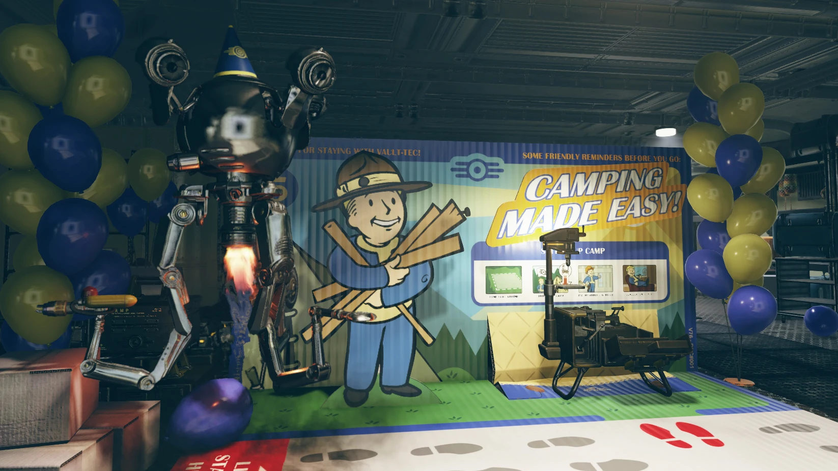 Выжить на поверхности легко, если у вас есть C.A.M.P. — конструктивно-агрегатная мобильная платформа. Прекрасное название...Вам нужен пункт приготовления пищи? Используйте C.A.M.P.! Новый дом? Вам поможет C.A.M.P.! Предметы роскоши? C.A.M.P.! Военный корабль? Ой, ну... тогда нет.Кроули