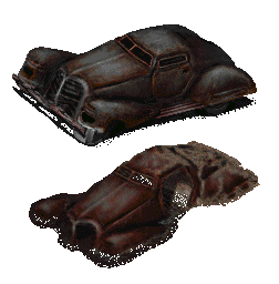 Единственное применение, которое нашли жители пустошей для этих авто — это нарезка их на повозки и использование автомобильных кресел в качестве диванов.