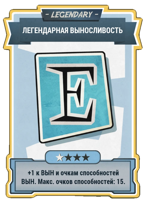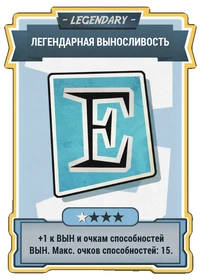 | ★★★★ | +5 к ВЫН и очкам способностей ВЫН. Макс. очков способностей: 15. | 005cf1d1 | LGN_LegendaryEndurance_Perk04 |