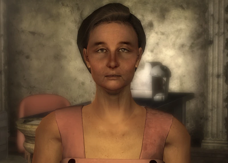 - ↑ Согласно редактору G.E.C.K. раса у персонажа — HispanicOld