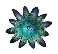 Красивый цветок голубого цвета, светящийся в темноте, растущий на колючих кустах. Незначительно восстановит здоровье, загрязняя организм радиацией.