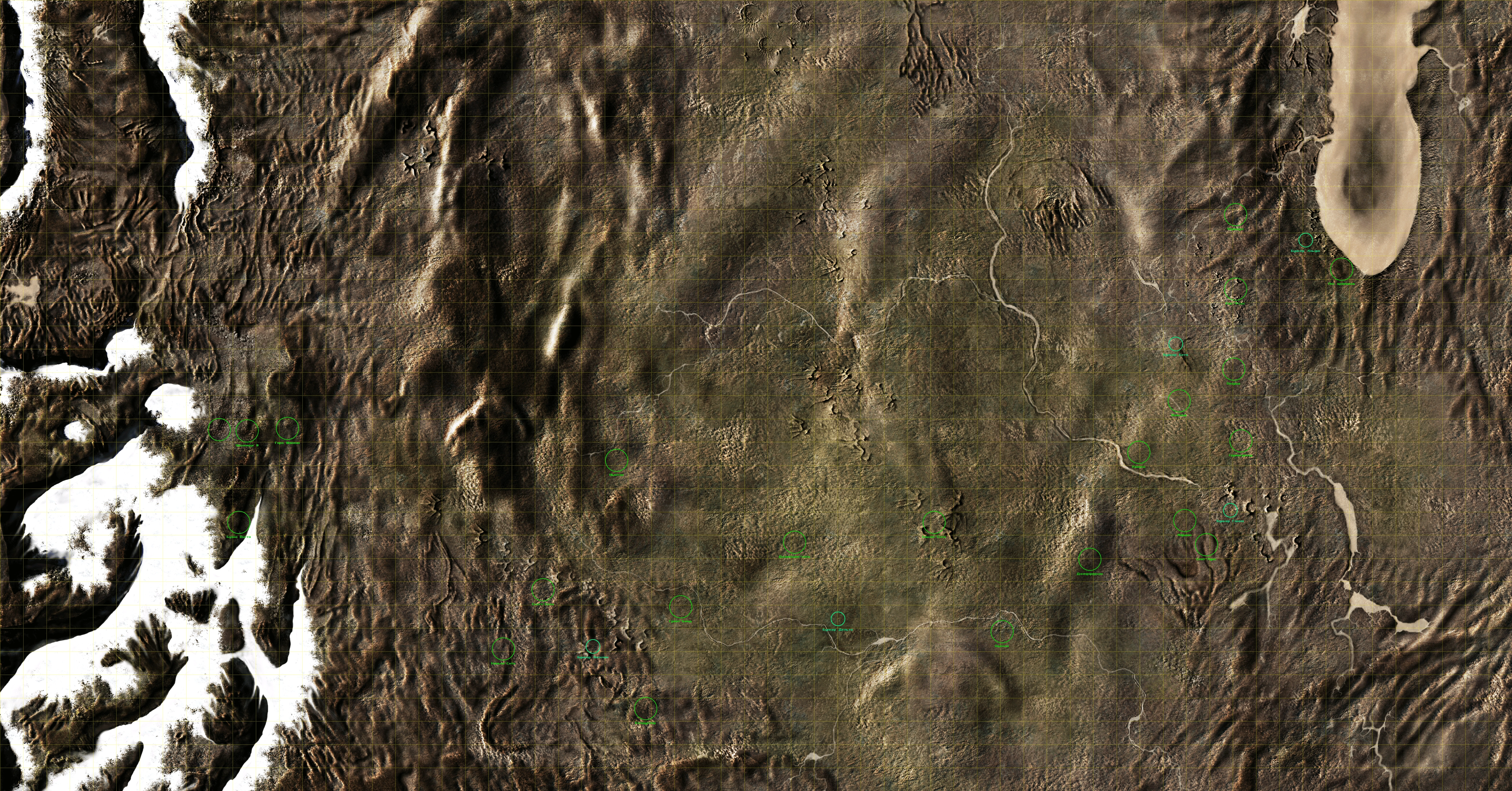 На общей карте нет возможности при входе в локацию увидеть берег реки (или озера Мичиган), но на самом западе карты есть точки входа в снежный биом.