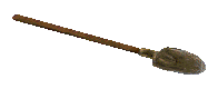 - Лопата на земле выглядит как обычный совковый инвентарь с ручкой, в то время как в инвентаре персонажей она ручки не имеет — как обычная штыковая лопата.