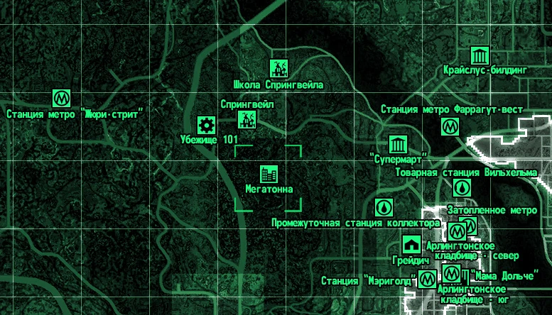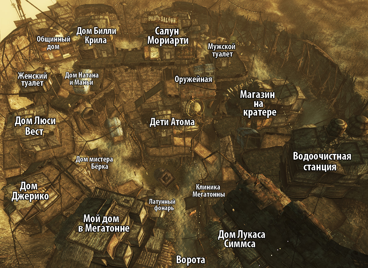 - 44 «Добро пожаловать в Столичную пустошь» — там можно пойти в Мегатонну, и узнать «что за бардак тут вообще происходит». После этого начнется квест «Ненадёжный след».