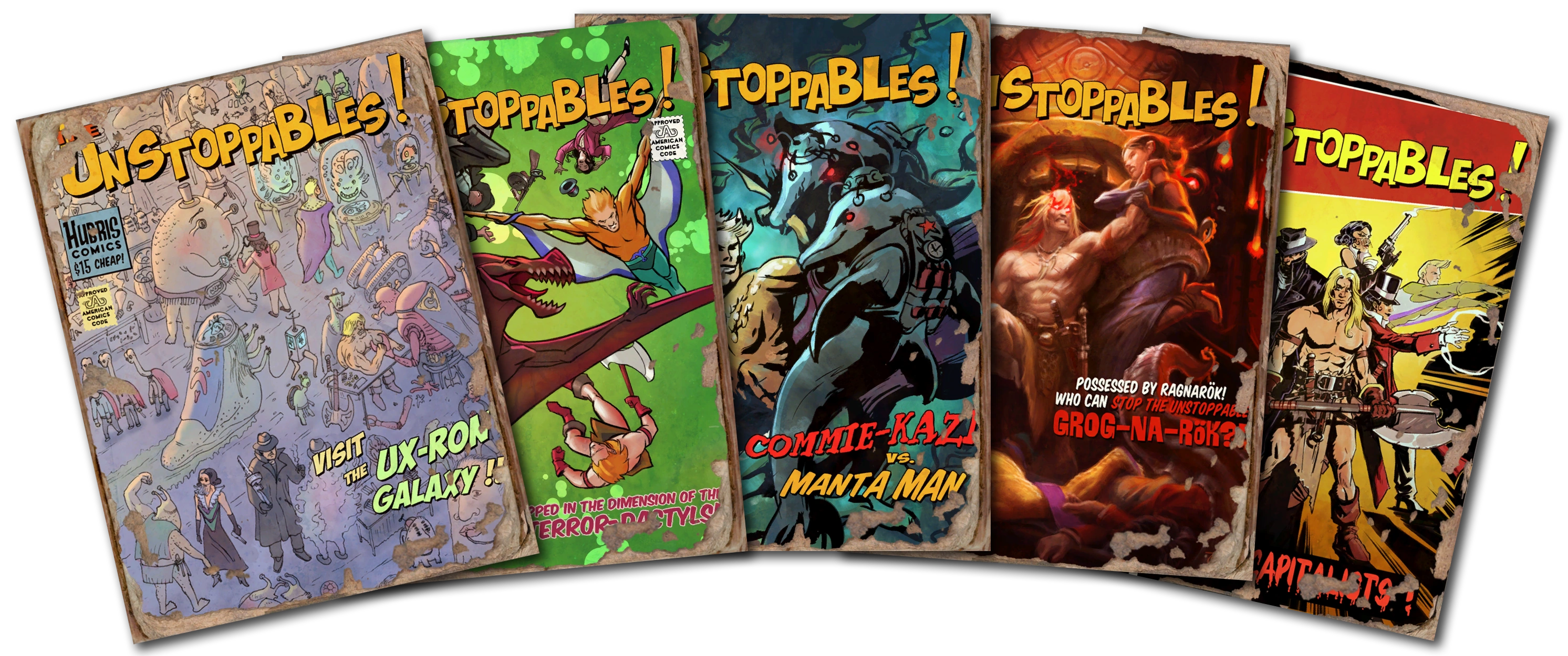 Как видно по обложкам (см. галерею), серия объединяла таких персонажей, как Грогнак-варвар, Серебряный Плащ, Таинственная госпожа, и Морской Дьявол, которому была посвящена своя серия комиксов «Морской Дьявол» и пятая героиня Инспектор. Вместе они и образуют команду супергероев «Несокрушимые». На обложках журнала изображены изображения героев, злодеев и приключений каждого выпуска. Журнал Несокрушимые продавался по 15 долларов за копию.