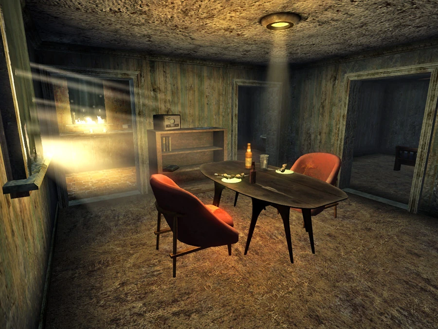 Центральный дом в городе. В отличии от остальных забаррикадирован. Принадлежит параноику. В доме множество ловушек. В одну из них угодил легионер (на входной двери остатки ловушки с дробовиком).