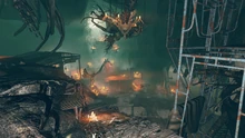 Чтобы попасть на более высокий уровень обзора, резидент может подняться по лестнице рядом с Джози или пройти по пандусу, расположенному рядом с Акселем и Гиро. В той части обзорной площадки, которая находится рядом с Акселем и Гиро, есть небольшая зона отдыха, заполненная установленными таксидермическими фигурами, выставленным оружием, а также различными картотеками и коробками. Здесь должно было располагаться место для Уинди. К площадке примыкает узкий туннель, который ведет к обзорной площадке, где стоит Джози. Пол этой секции также является крышей загона браминов. На этой части уровня нет ничего, кроме нескольких полок с коробками и лампами.
