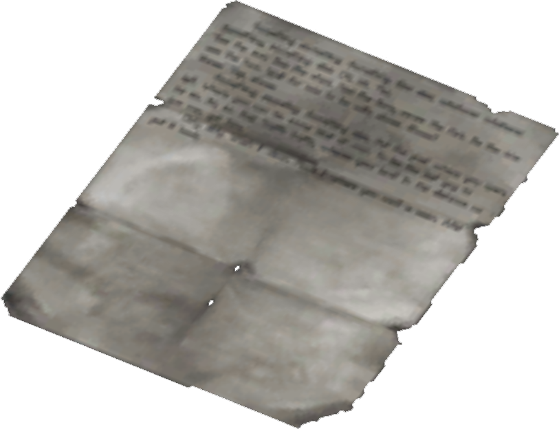 Заметка имеет модель, но не имеет иконки. Представлена в игре как предмет. Изображение заметки встречается в игре крайне редко.