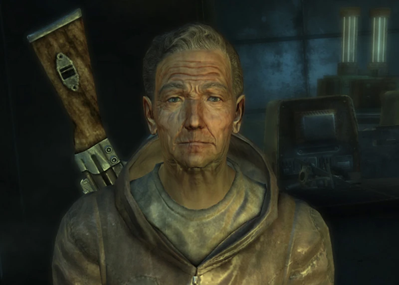 - «Секретная у меня работа… Ладно, если тебе уж так надо знать… Я электрик и компьютерщик. А ещё немного врач. И вообще самый одарённый учёный, которого ты когда-либо встретишь… Хм. Я основатель Ривет-Сити! А эта стерва Ли со своей бандой меня вышвырнула. Ха! Тоже мне проект „Чистота“. Банда кретинов — даже воду очищать не умеют».Звуковой файл